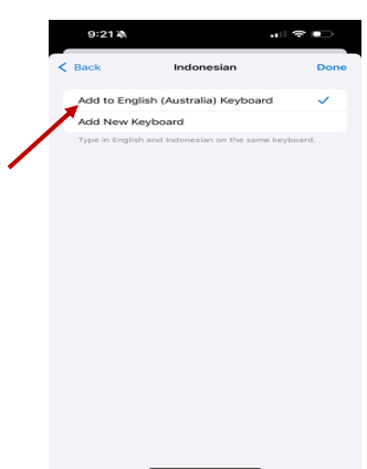 o Add to English Keyboard: Type in English and Indonesian on the same keyboard.