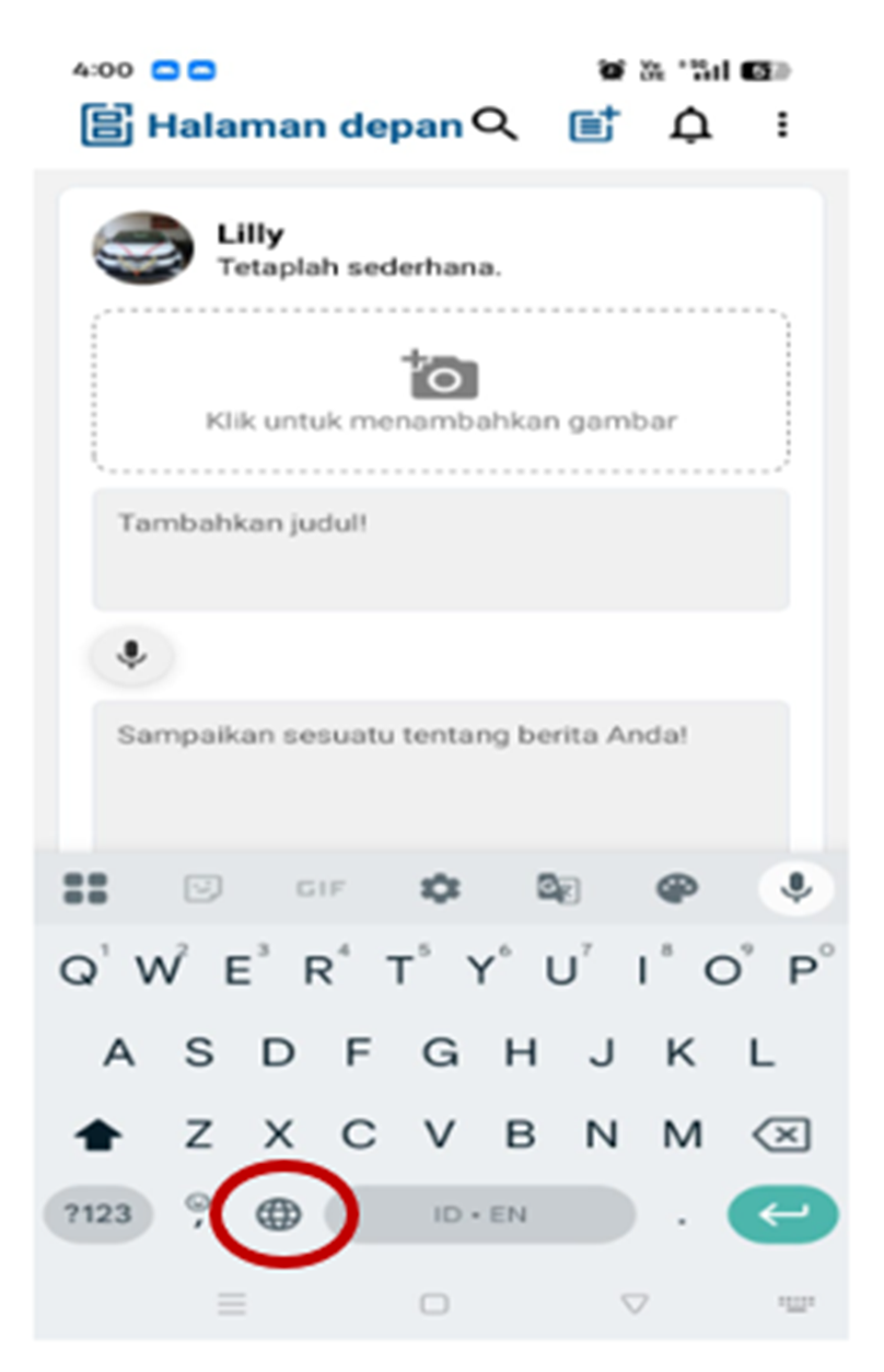● Once added, use the globe icon on the keyboard to switch between languages, including Indonesian.