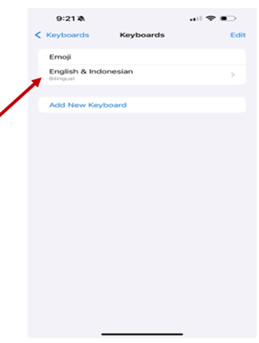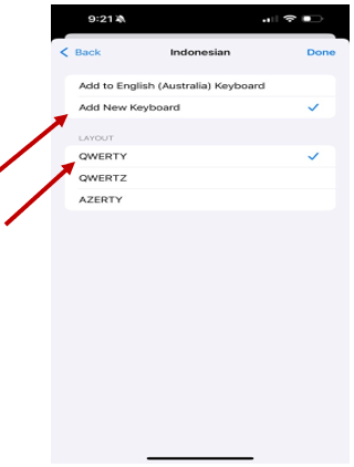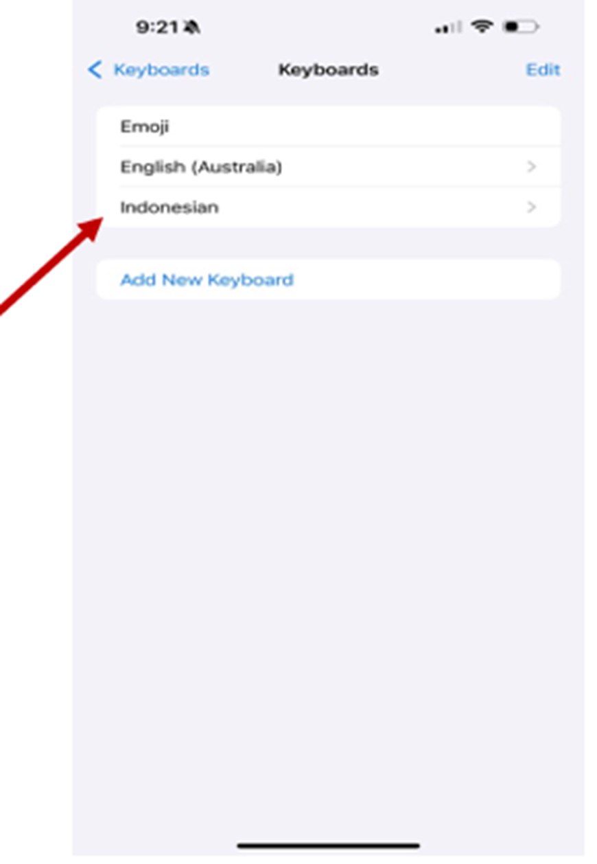 ● Select "Add New Keyboard" and choose Indonesian from the list.