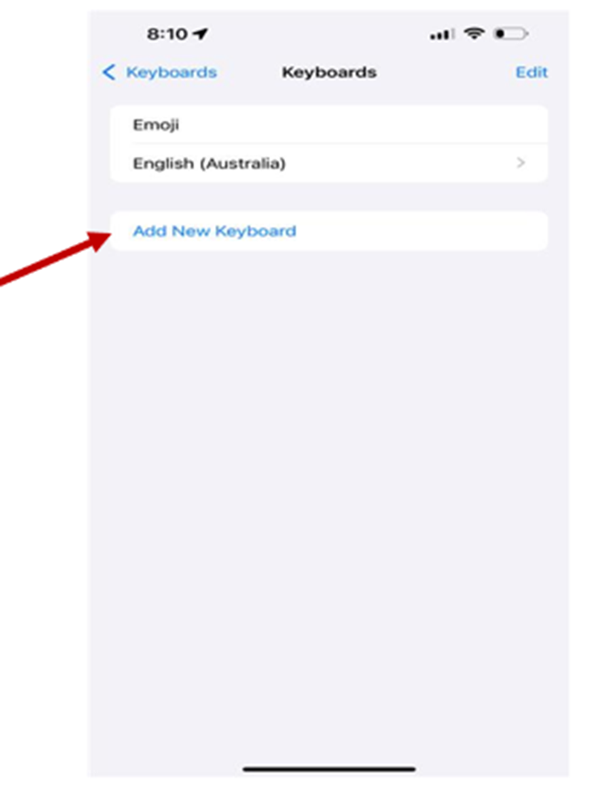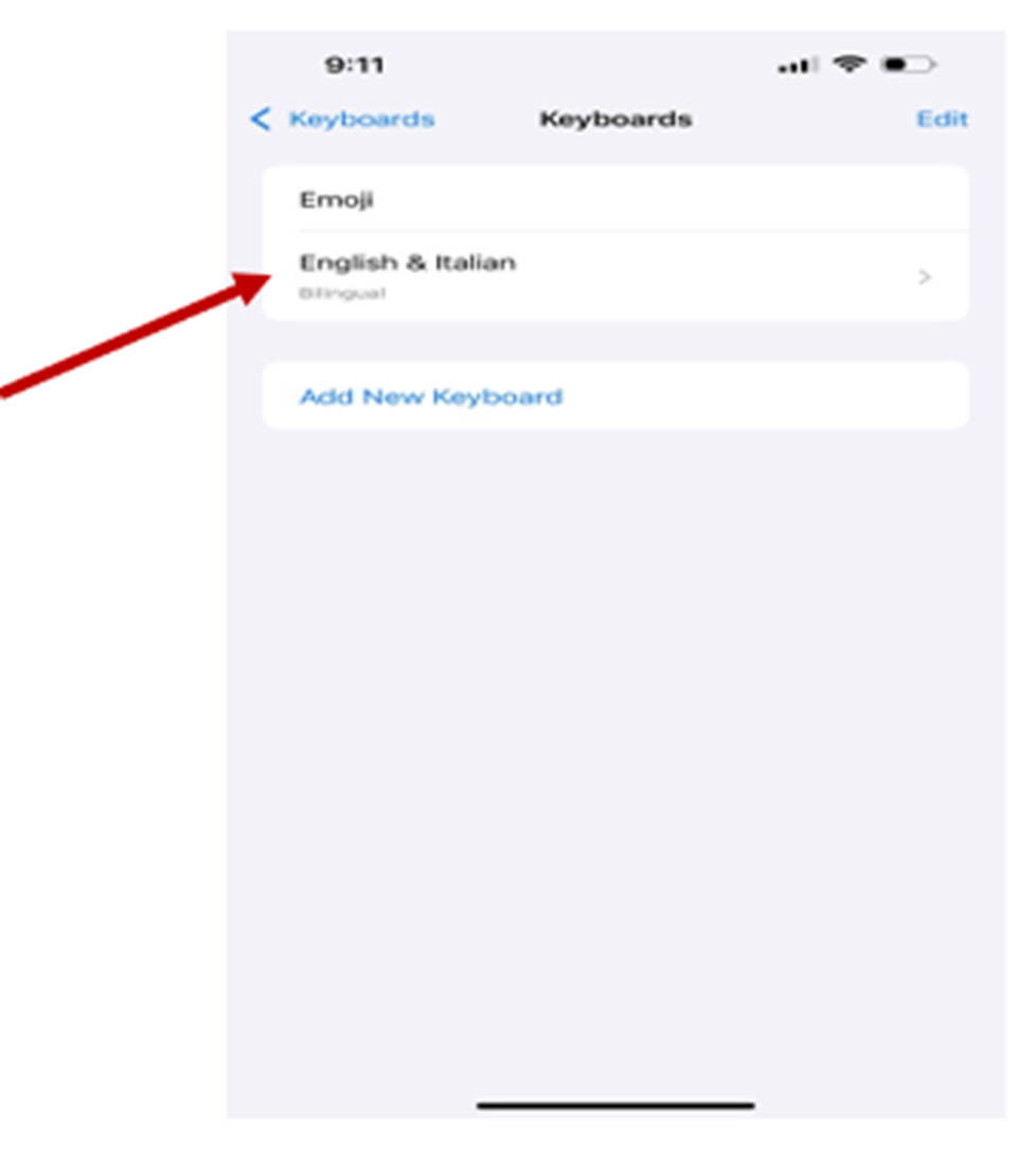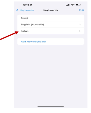 ● Select "Add New Keyboard" and choose Italiano from the list.