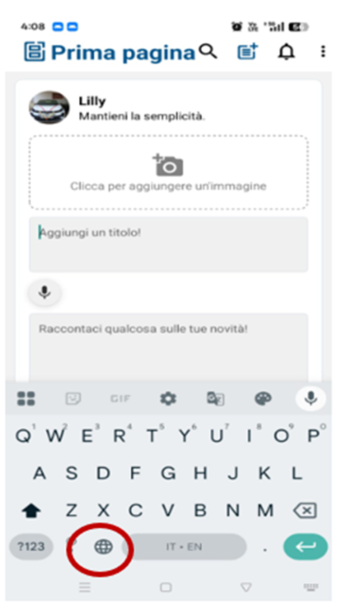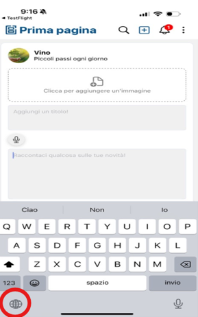 ● Once added, use the globe icon on the keyboard to switch between languages, including Italiano.