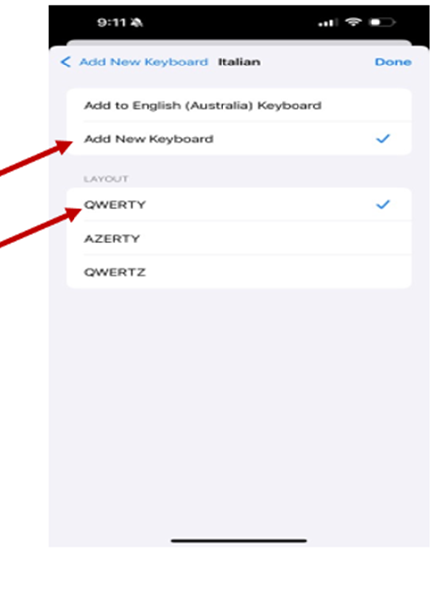 o   Add New Keyboard: Select this to choose a preferred Italiano keyboard layout.