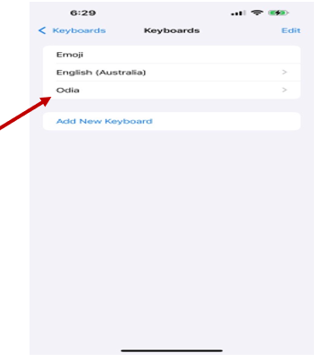 ● Tap +Add Keyboard and select Odia from the list.