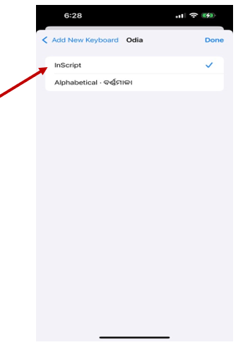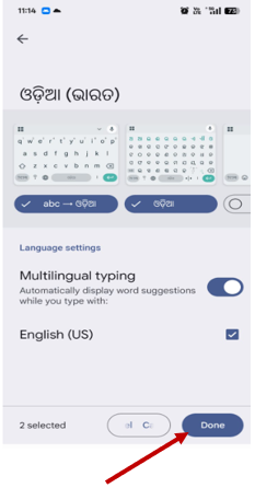 ● The Odia keyboard will be added to your current keyboard settings according to the selected option.