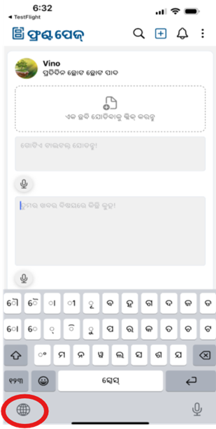 ● Once added, use the globe icon on the keyboard to switch between languages, including Odia.