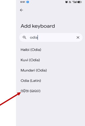 ● Select "Add New Keyboard" and choose Odia from the list.