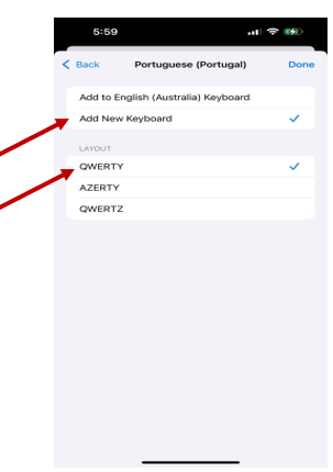 ● Tap +Add Keyboard and select Portuguese from the list.