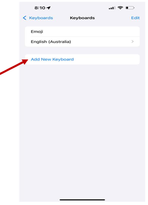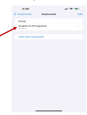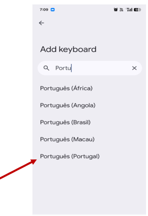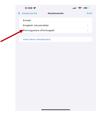 ● Select "Add New Keyboard" and choose Portuguese from the list.