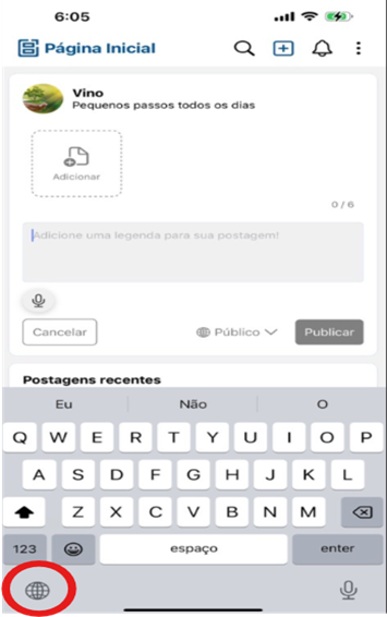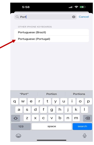● Once added, use the globe icon on the keyboard to switch between languages, including Portuguese.