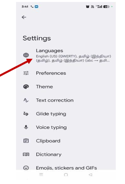 ● Tap on Languages to view the list of currently selected languages.