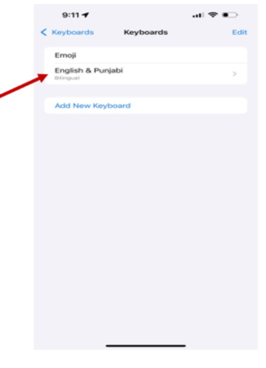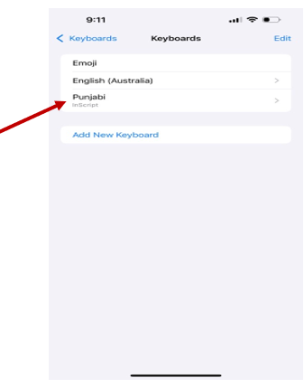 ● Select "Add New Keyboard" and choose Punjabi from the list.
