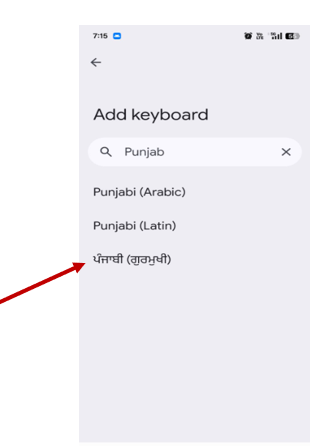 o Add New Keyboard: Select this to choose a preferred Punjabi keyboard layout.