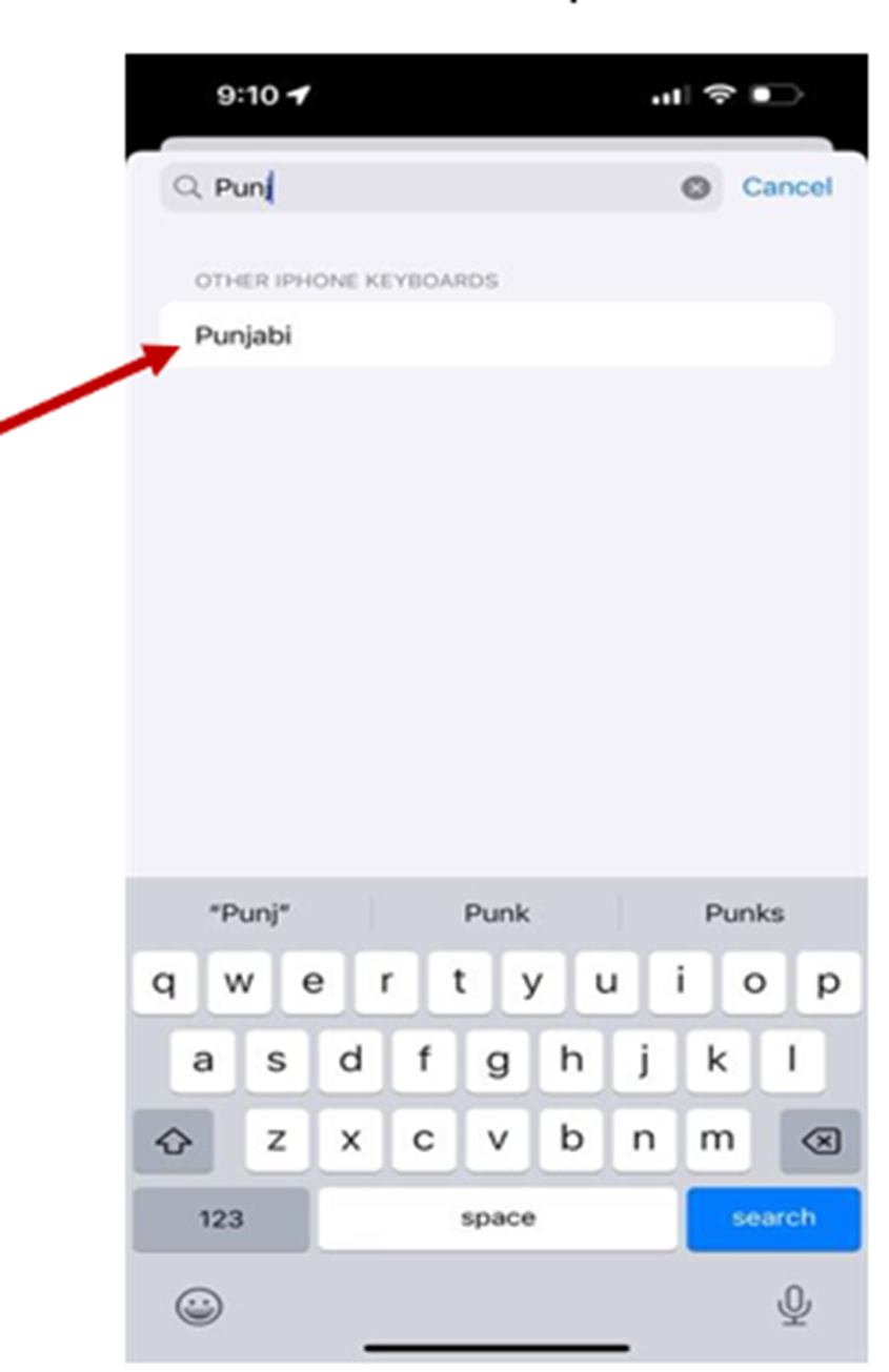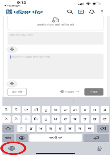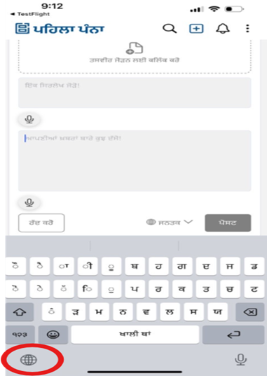 ● Once added, use the globe icon on the keyboard to switch between languages, including Punjabi.