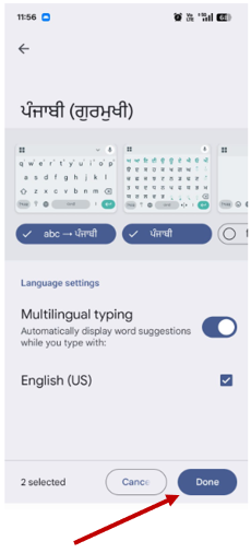 ● The Punjabi keyboard will be added to your current keyboard settings according to the selected option.