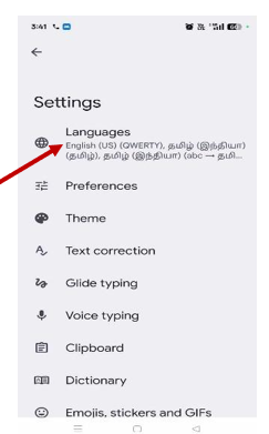 ● Tap on Languages to view the list of currently selected languages.