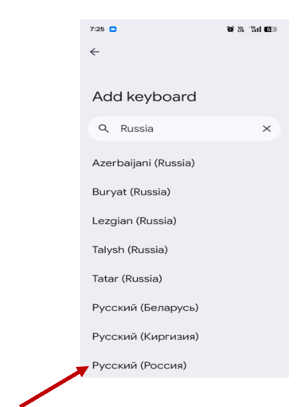 ● The Russian keyboard will be added to your current keyboard settings.