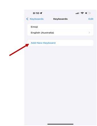 ● Select "Add New Keyboard" and choose Russian from the list.