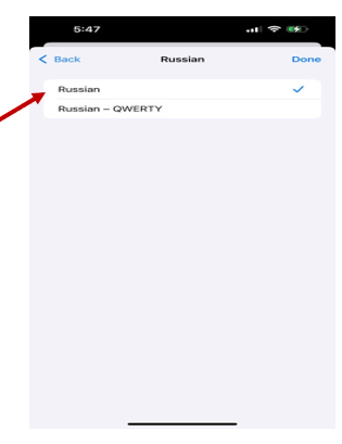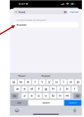 ● Once added, use the globe icon on the keyboard to switch between languages, including Russian.
