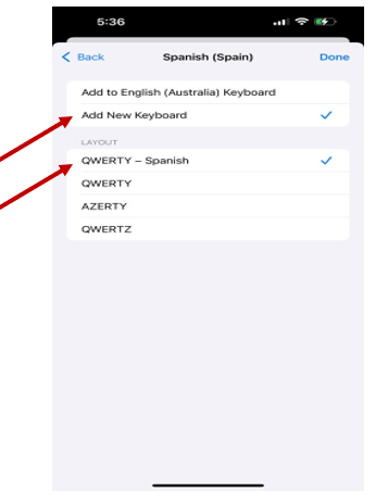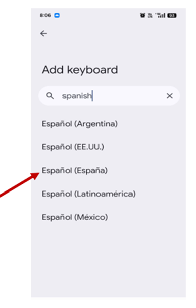o Add New Keyboard: Select this to choose a preferred Spanish keyboard layout.
