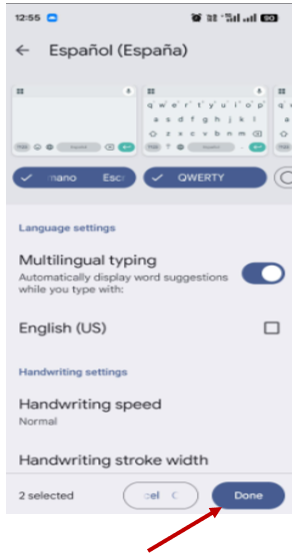 ● The Spanish keyboard will be added to your current keyboard settings according to the selected option.