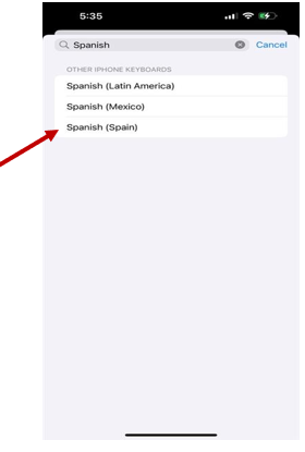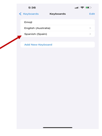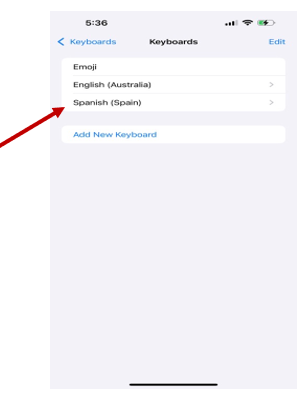 ● Select "Add New Keyboard" and choose Spanish from the list.