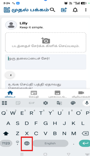 ● Once added, use the globe icon on the keyboard to switch between languages, including Tamil.