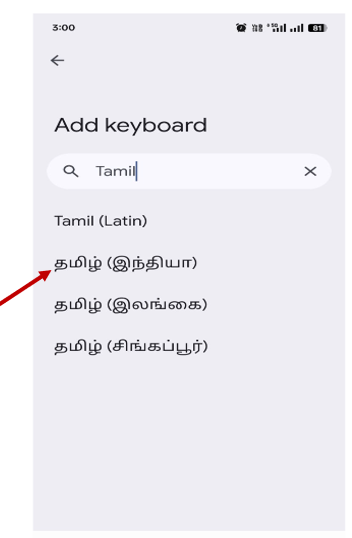 ○ Add New Keyboard: Select this to choose a preferred Tamil keyboard layout.